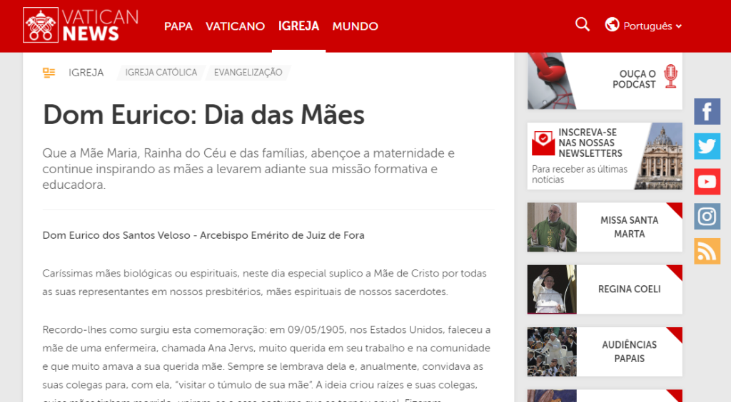 Vatican News – Presidente emérito da Pró-Saúde celebra as mães vitimadas pela Covid-19