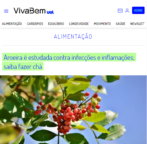 Viva Bem – UOL – Aroeira é estudada contra infecções e inflamações; saiba fazer chá