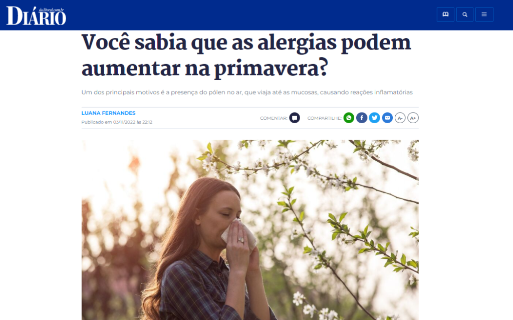 Diário do Litoral – Você sabia que as alergias podem aumentar na primavera?