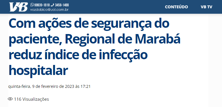 Voz do Bico – Com ações de segurança do paciente, Regional de Marabá reduz índice de infecção hospitalar