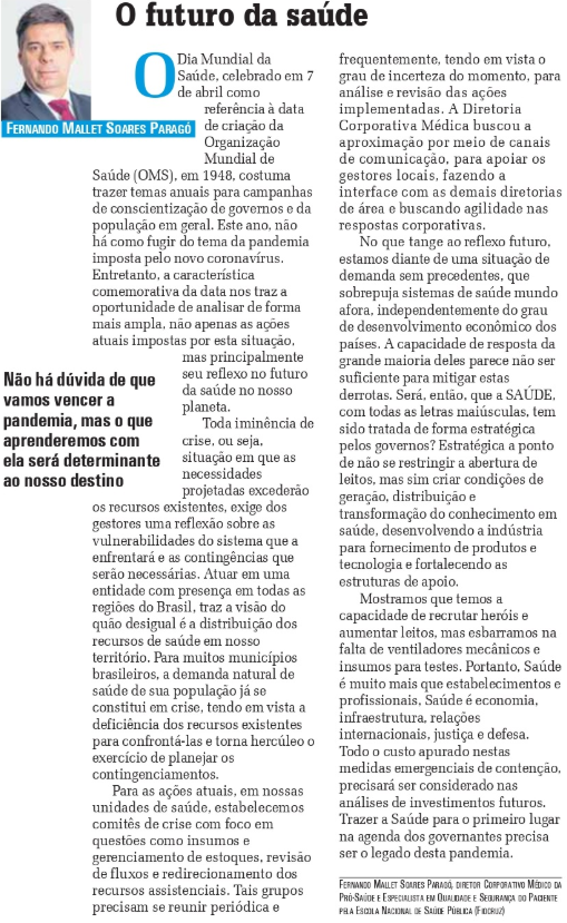 A Gazeta MT – Dia Mundial da Saúde: diretor médico da Pró-Saúde analisa o legado que a pandemia da do coronavírus deixará nos hospitais