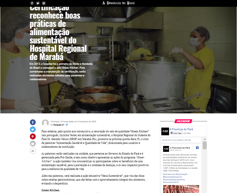 A Província do Pará – Certificação reconhece boas práticas de alimentação sustentável do Hospital Regional de Marabá