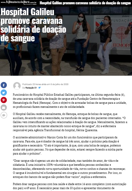 A Província do Pará – Hospital Público Galileu promove caravana solidária de doação de sangue