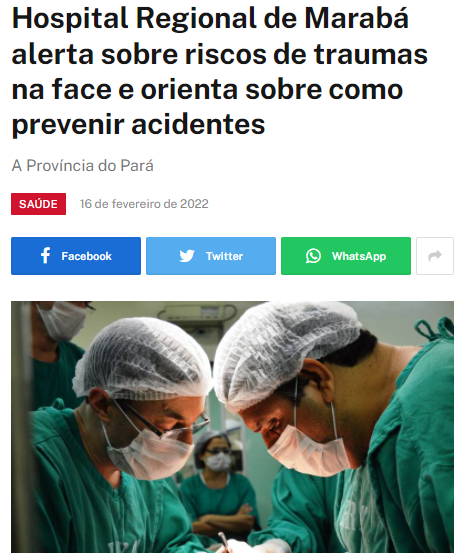 A Província do Pará – Hospital Regional de Marabá alerta sobre os riscos de traumas da face e orienta sobre como prevenir acidentes