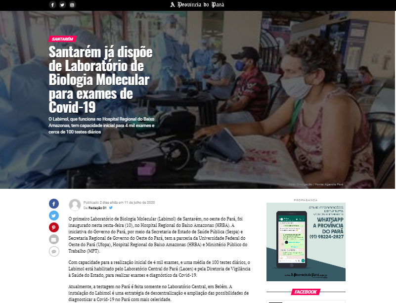 A Província do Pará – Hospital Regional do Baixo Amazonas inaugura primeiro laboratório para testes da Covid-19 no interior do Estado