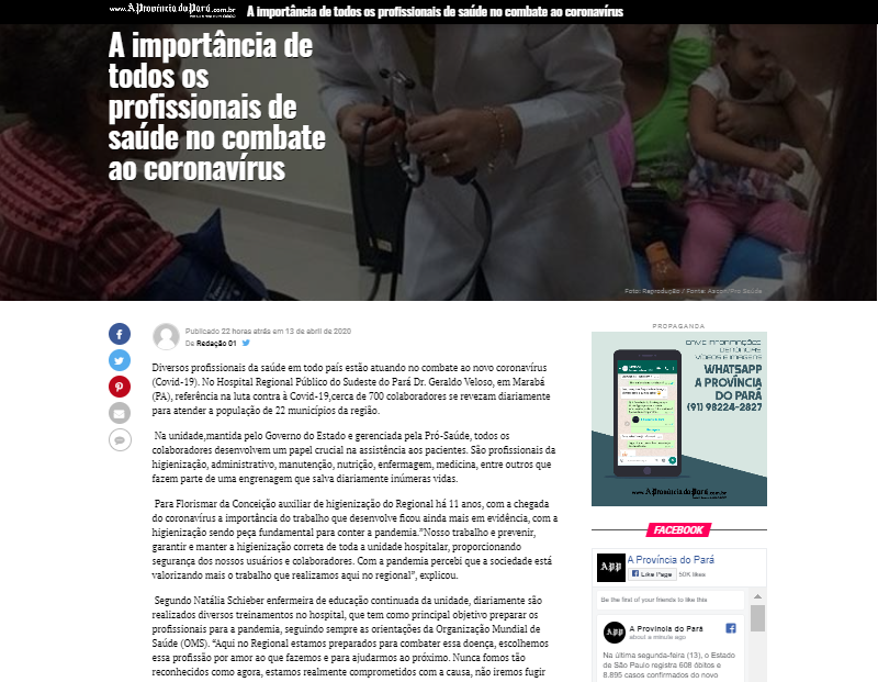 A Província do Pará – Hospital Regional do Sudeste do Pará destaca a importância de todos colaboradores no combate ao coronavírus
