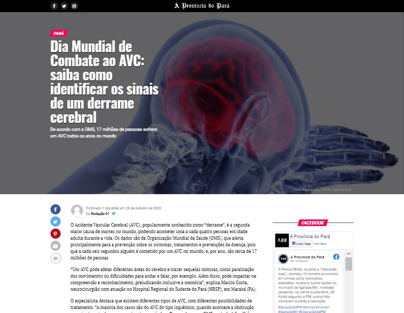 A Província do Pará – Hospital Regional do Sudeste do Pará orienta para os sinais de derrame cerebral