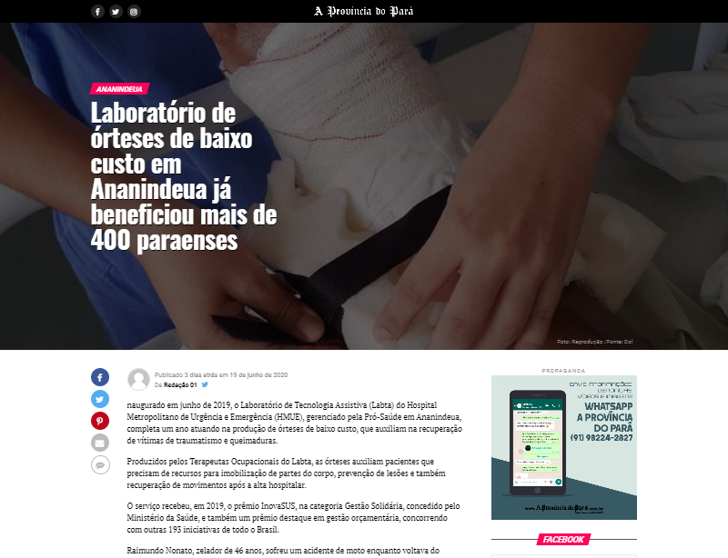 A Província do Pará – Laboratório de órteses de baixo custo do Hospital Metropolitano já beneficiou mais de 400 paraenses
