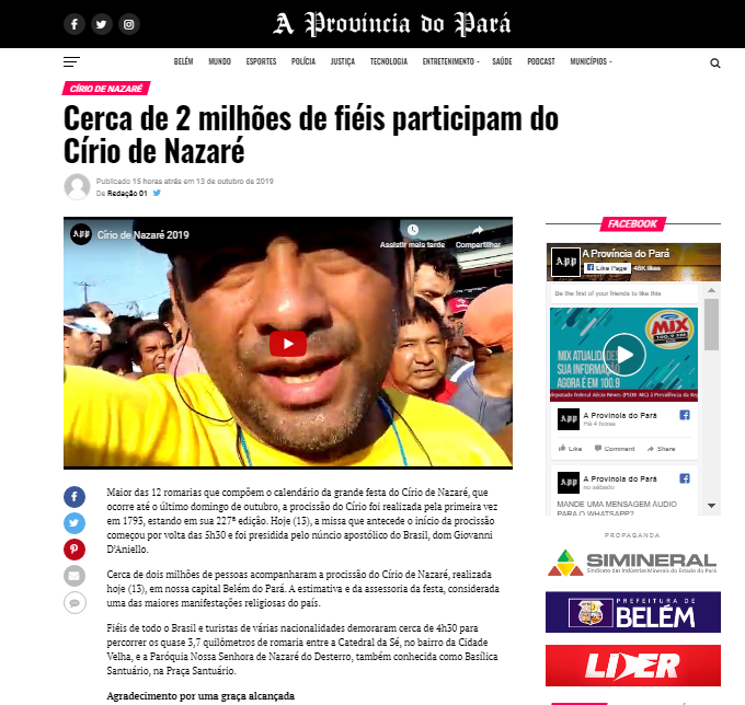 A Província do Pará – Posto de atendimento montado pelo Hospital Metropolitano de Urgência e Emergência atendeu a 239 de fiéis