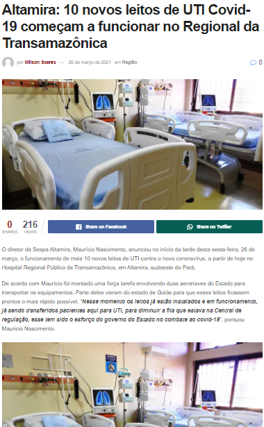 A Voz do Xingu – 10 novos leitos exclusivos para Covid-19 começam a funcionar na UTI do Hospital Regional da Transamazônica