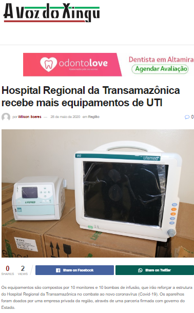 A Voz do Xingu – Hospital Regional da Transamazônica recebe novos monitores e bombas de infusão para reforçar UTI destinada a casos de covid-19