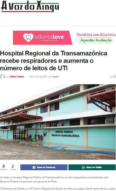 A Voz do Xingu – Hospital Regional da Transamazônica recebe respiradores e aumenta número de leitos de UTI