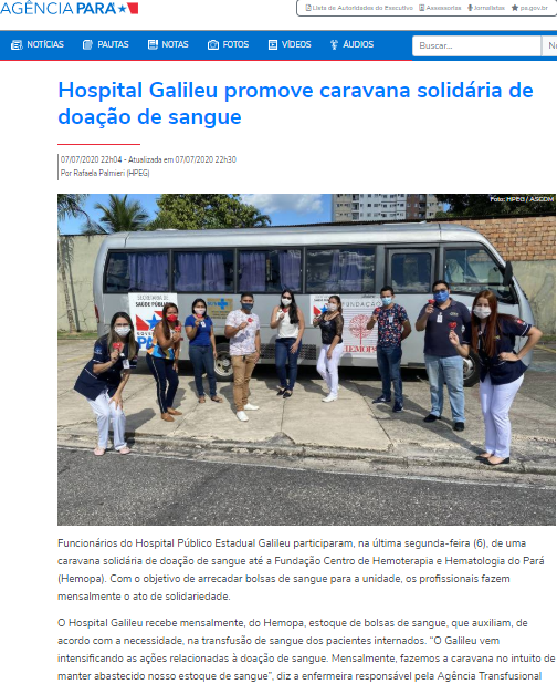Agência Pará – Hospital Público Galileu promove caravana solidária de doação de sangue