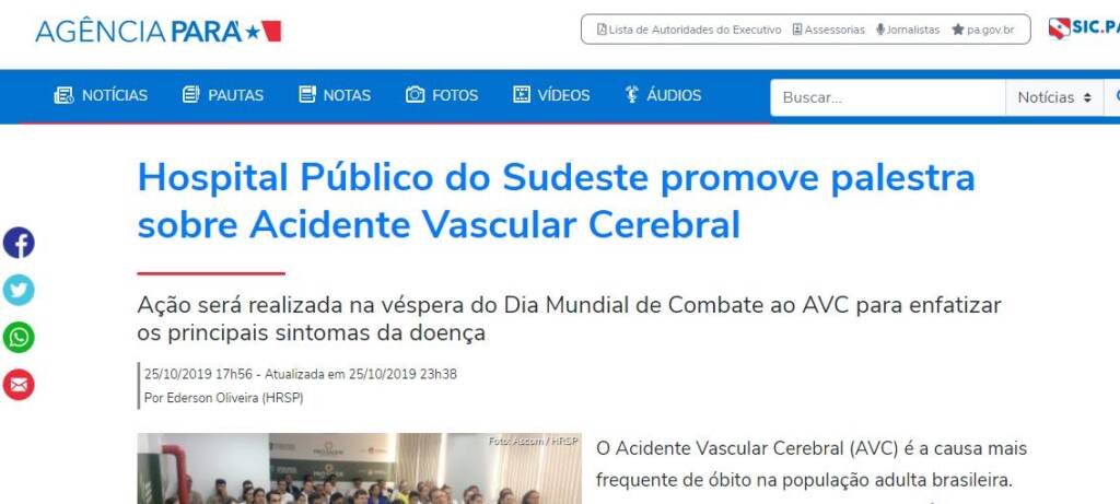 Agência Pará – Hospital Regional do Sudeste do Pará organiza palestra sobre conscientização e prevenção do AVC