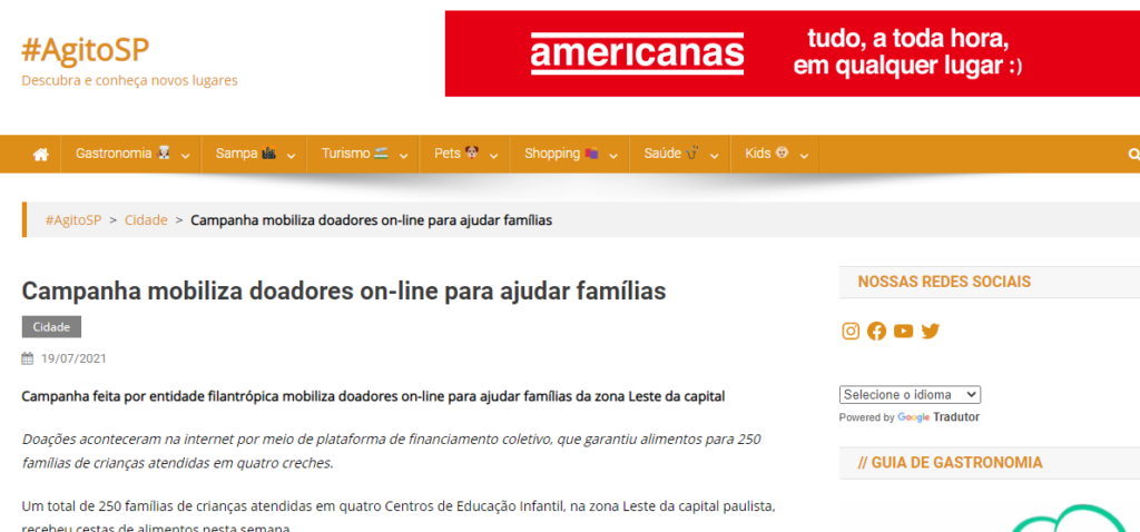 Agito SP – Campanha mobiliza doadores on-line para ajudar famílias