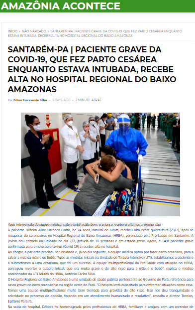 Amazônia Acontece – Paciente grave da Covid-19, que fez parto cesárea enquanto estava intubada, recebe alta no Hospital Regional do Baixo Amazonas