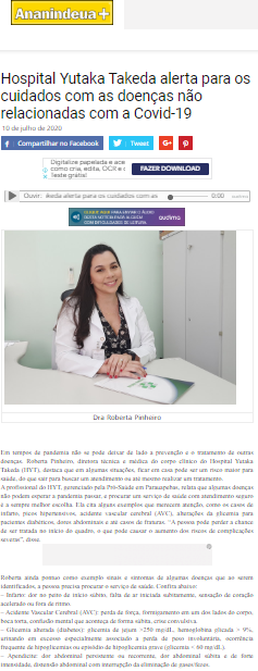 Ananindeua Mais – Hospital Yutaka Takeda alerta para os cuidados com doenças não relacionadas à Covid-19
