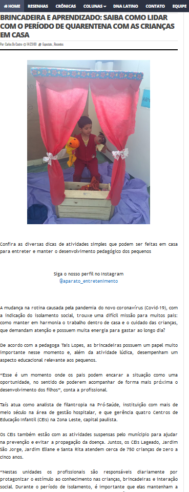Aparato do Entretenimento – Pedagoga da Pró-Saúde dá dicas de atividades pedagógicas durante a quarentena