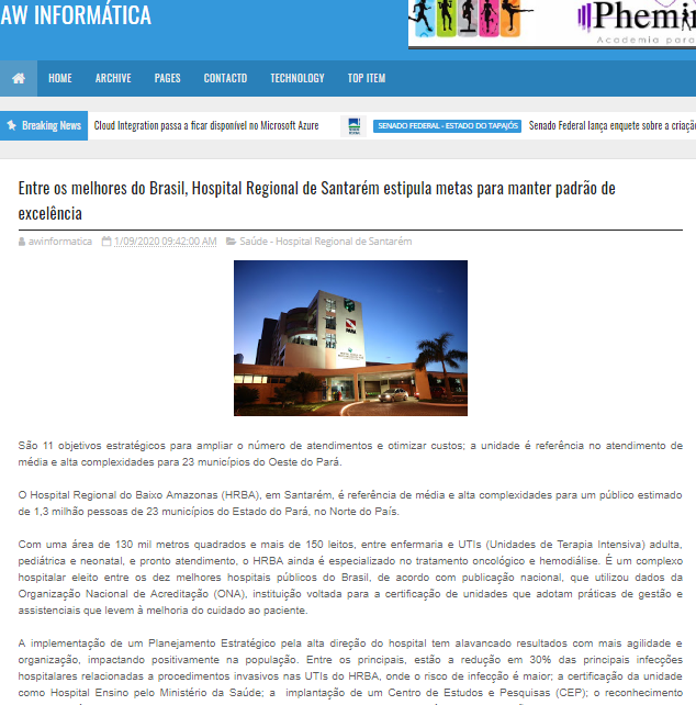 AW Informática – Entre os melhores do Brasil, Hospital Regional de Santarém estipula metas para manter padrão de excelência