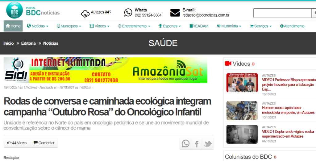 BDC Notícias – Rodas de conversa e caminhada ecológica integram campanha “Outubro Rosa” do Oncológico Infantil
