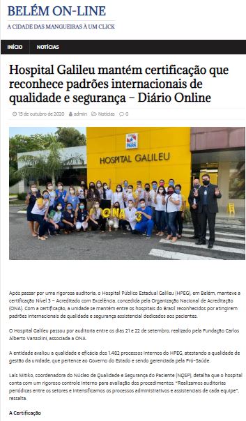 Belém On-line – Hospital Galileu mantém certificação que reconhece excelência