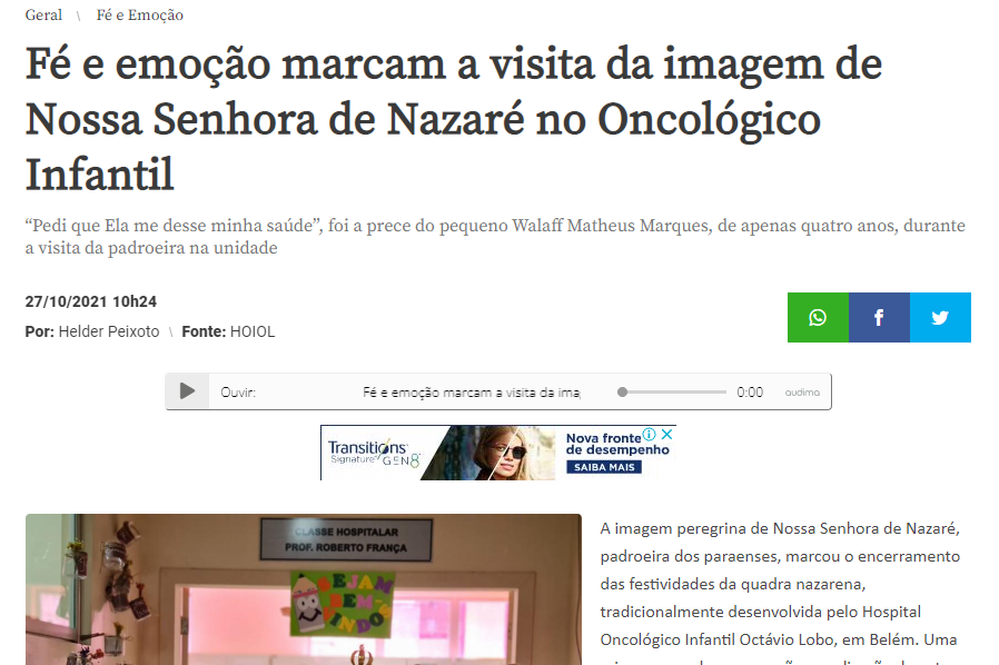 Blog HP – Fé e emoção marcam a visita da imagem de Nossa Senhora de Nazaré no Oncológico Infantil