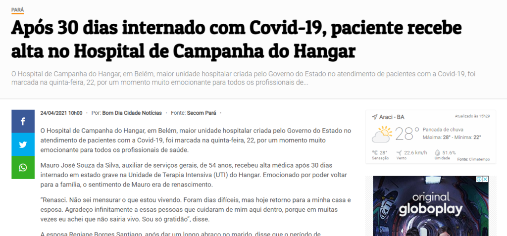 Bom dia Cidade Notícias – Paciente recebe alta no Hospital de Campanha do Hangar após 30 dias