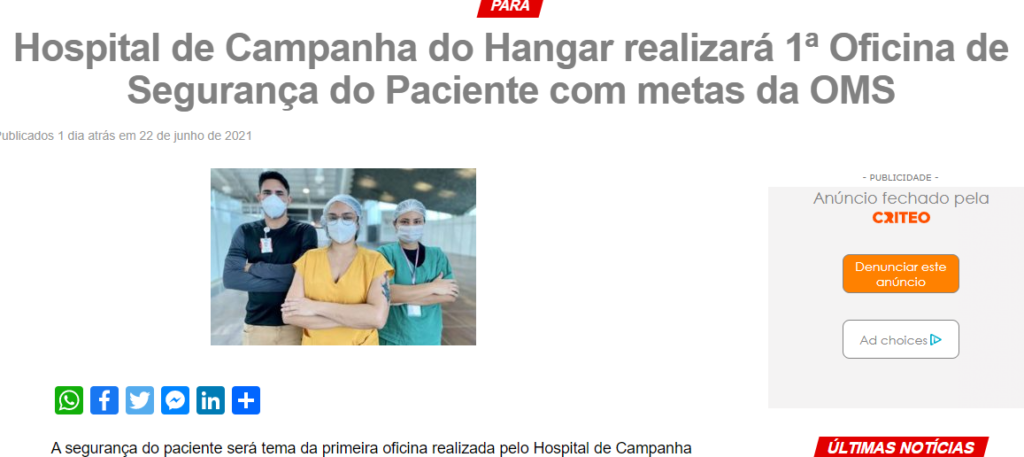 Bomba Bomba – Hospital de Campanha do Hangar realizará 1ª Oficina de Segurança do Paciente com metas da OMS
