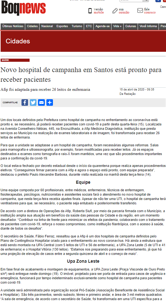 Boq News – UPA Zona Leste está pronta para funcionar como hospital de campanha e atender casos de coronavírus