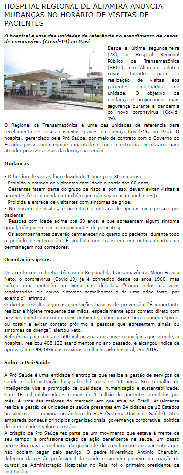 Brasil Novo Notícias – Hospital Regional da Transamazônica anuncia mudanças no horário de visita de pacientes