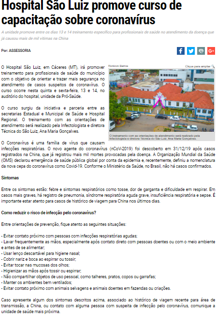 Cáceres Notícias – Hospital São Luiz promove curso de capacitação sobre coronavírus para profissionais da saúde
