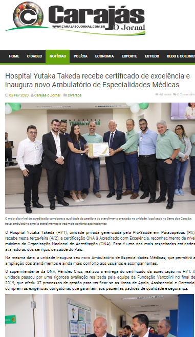 Carajás O Jornal – Hospital Yutaka Takeda recebe certificado de excelência e inaugura novo Ambulatório de Especialidades Médicas