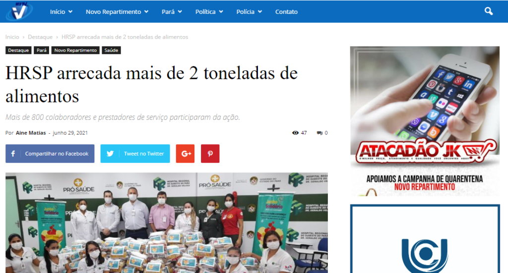 Coluna Vanguarda – HRSP arrecada mais de 2 toneladas de alimentos