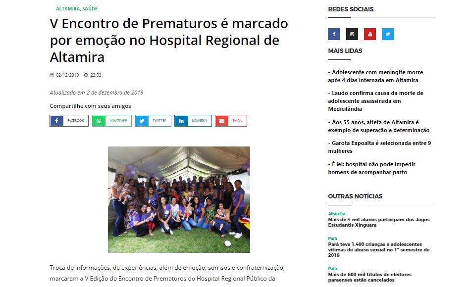 Confirma Notícia – V Encontro de Prematuros é marcado por emoção no Hospital Regional de Altamira