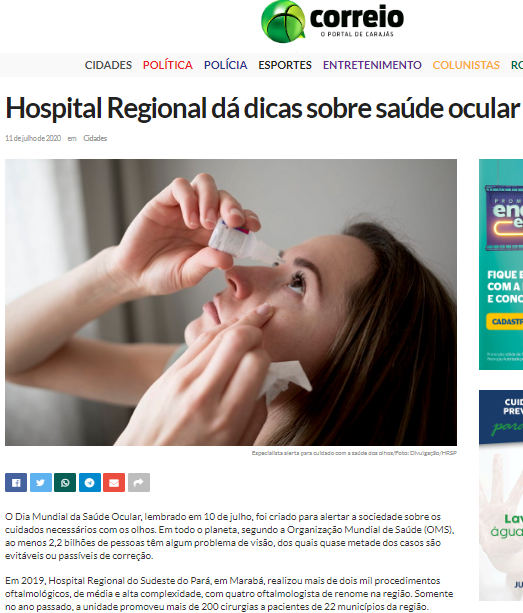 Correio de Carajás – No dia Mundial da Saúde Ocular, Hospital Regional do Sudeste do Pará dá dicas de prevenção