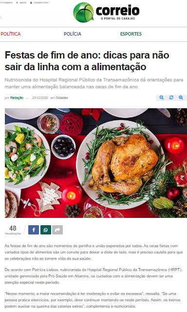 Correio de Carajás – Profissional do Hospital Regional da Transamazônica dá dicas para cuidar da alimentação no fim de ano