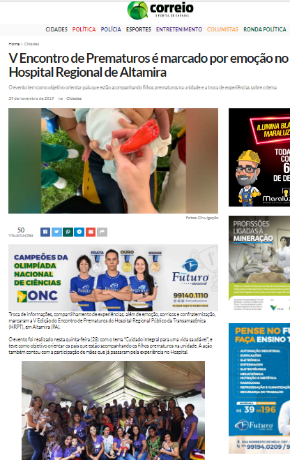 Correio de Carajás – V Encontro de Prematuros emociona mães no Hospital Regional da Transamazônia