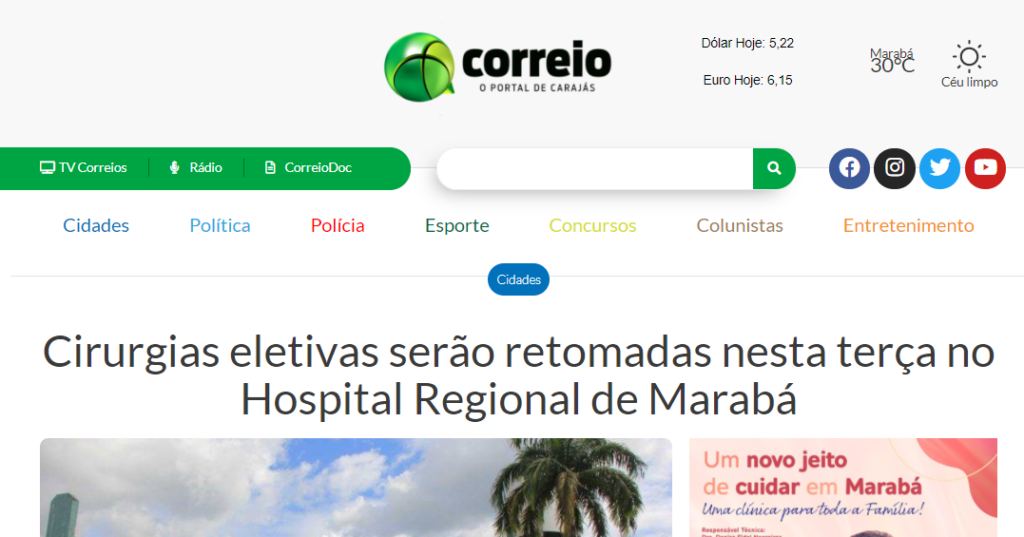 Correio dos Carajás – Cirurgias eletivas serão retomadas nesta terça-feira no Hospital Regional de Marabá