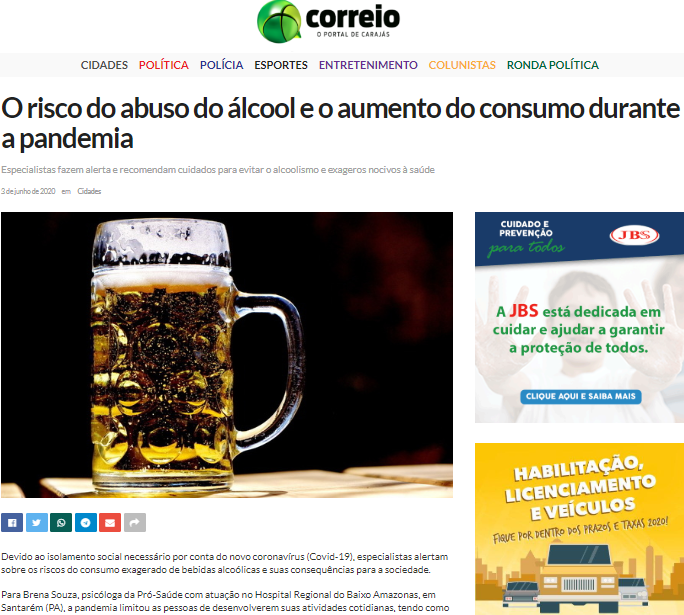 Correio dos Carajás – Hospital Regional do Baixo Amazonas alerta para os altos índices de consumo de bebida alcoólica durante a pandemia