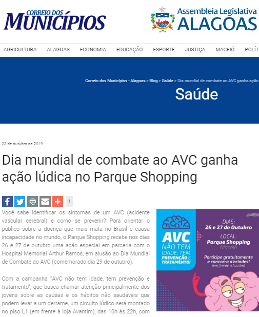 Correio dos Municípios – Hospital Memorial Arthur Ramos organiza ação lúdica em shopping para alertar sobre os perigos do AVC