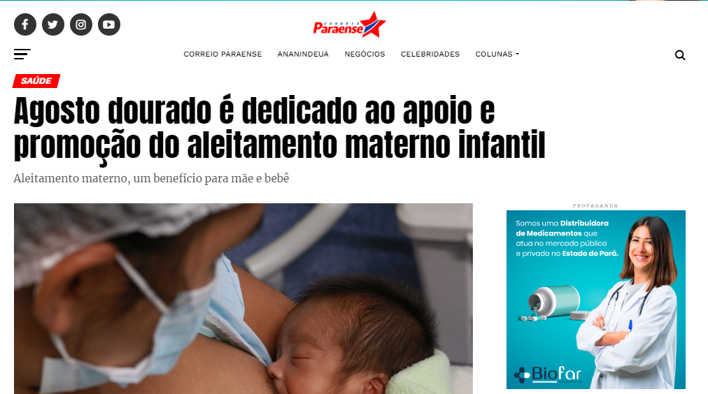 Correio Paraense – Agosto Dourado é dedicado ao apoio e promoção do aleitamento materno infantil
