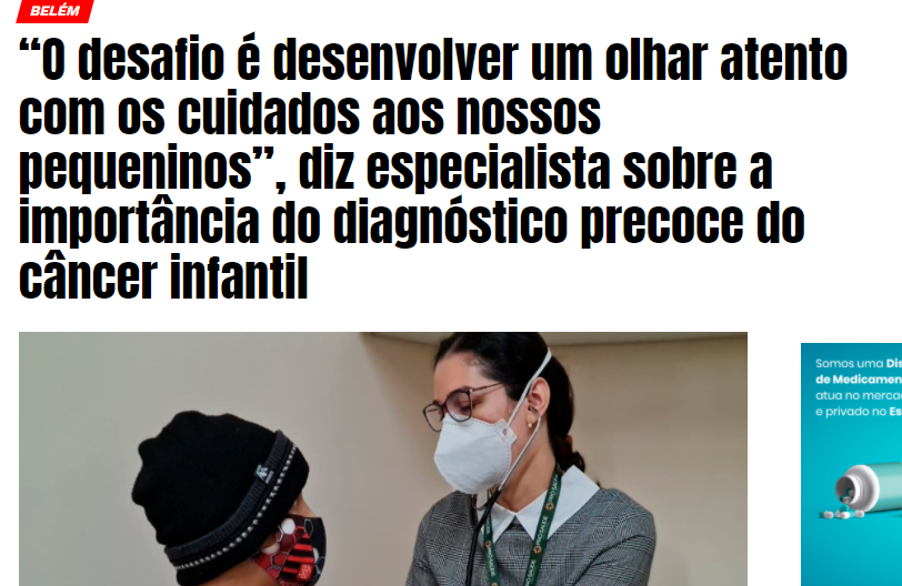 Correio Paraense – “O desafio é desenvolver um olhar atento com os cuidados ao nossos pequenos”, diz especialista sobre a importância do diagnóstico precoce do câncer infantil