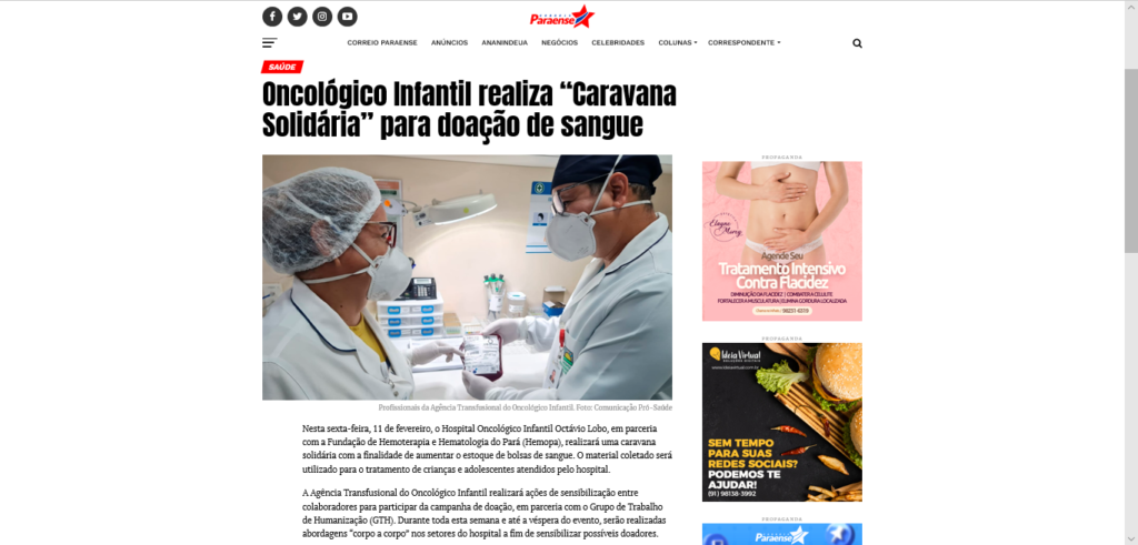 Correio Paraense- Oncológico Infantil realiza “Caravana Solidária” para doação de sangue