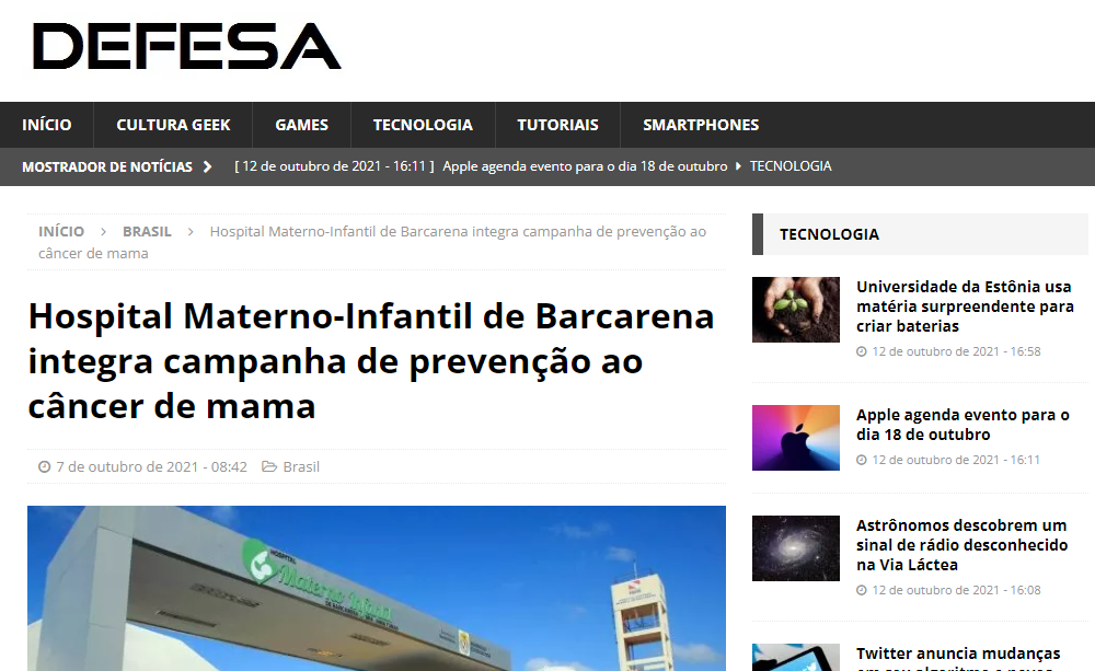 Defesa Agência de Notícias – Hospital Materno-Infantil de Barcarena integra campanha de prevenção ao câncer de mama