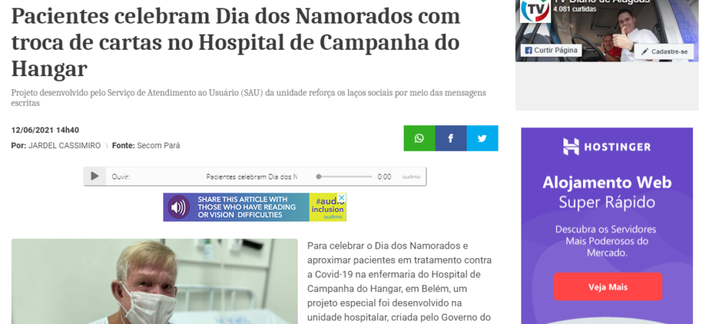 Diário de Alagoas – Pacientes celebram Dia dos Namorados com trocas de cartas no Hospital de Campanha do Hangar