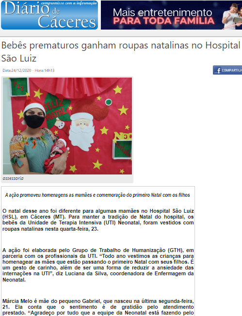 Diário de Cáceres – Bebês prematuros ganham roupas natalinas no Hospital São Luiz