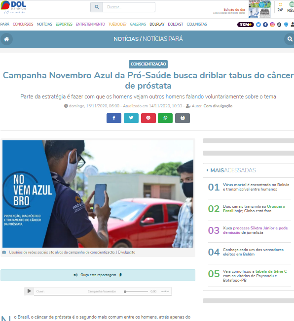 Diário do Pará Online – Campanha Novembro Azul da Pró-Saúde busca driblar tabus do câncer de próstata com ações nas redes sociais