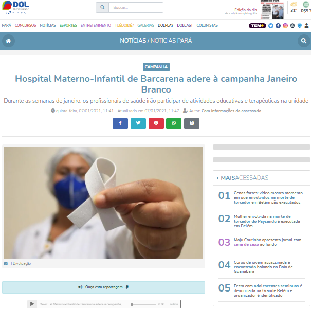 Diário do Pará Online – Hospital Materno-Infantil de Barcarena adere à campanha Janeiro Branco