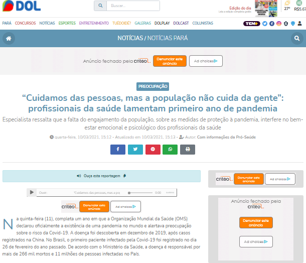 Diário do Pará Online – Profissionais de saúde do Hospital Metropolitano desabafam sobre o primeiro ano de pandemia