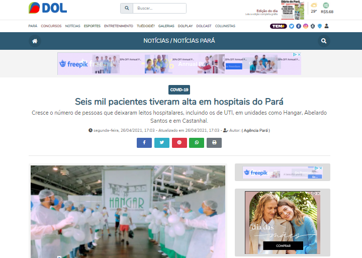 Diário do Pará Online – Quatro mil pacientes tiveram alta da Covid-19 no Hospital de Campanha do Hangar